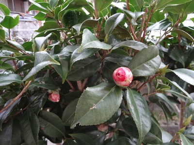 少し遅れましたが 開花し始めたツバキ