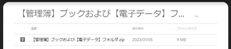 - 【管理簿】ブックと【電子データ】フォルダをまとめてzipファイルを作成します