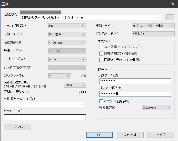 - zipファイルにパスワードを付けます