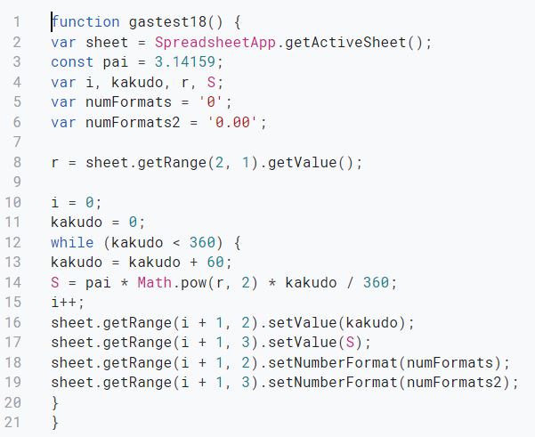 Googleスプレッドシートスクリプト 扇形角度と面積
