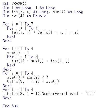 ExcelVBA 列ごとの平均点